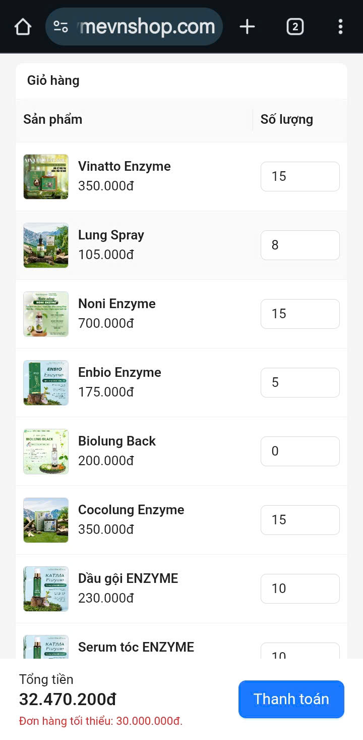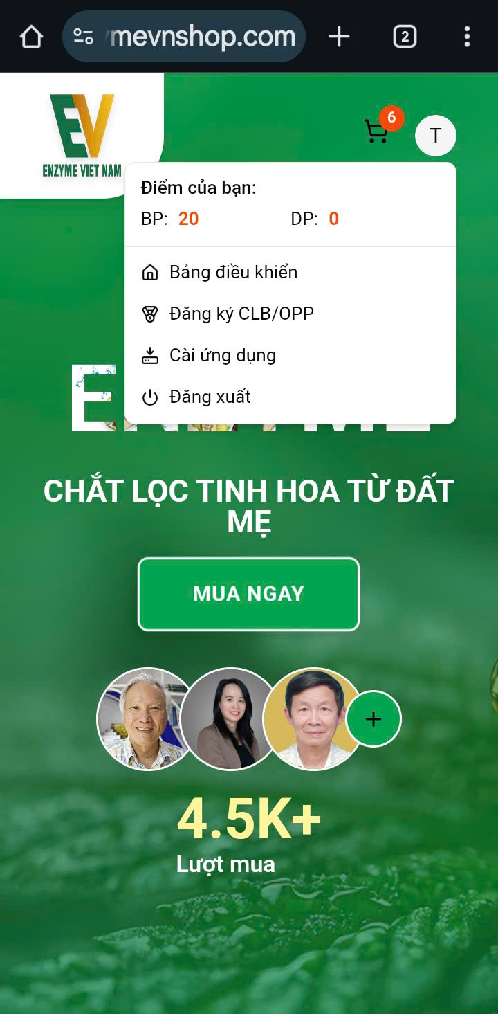 - Bước 1: Mở web Enzymevnshop trên màn hình desktop