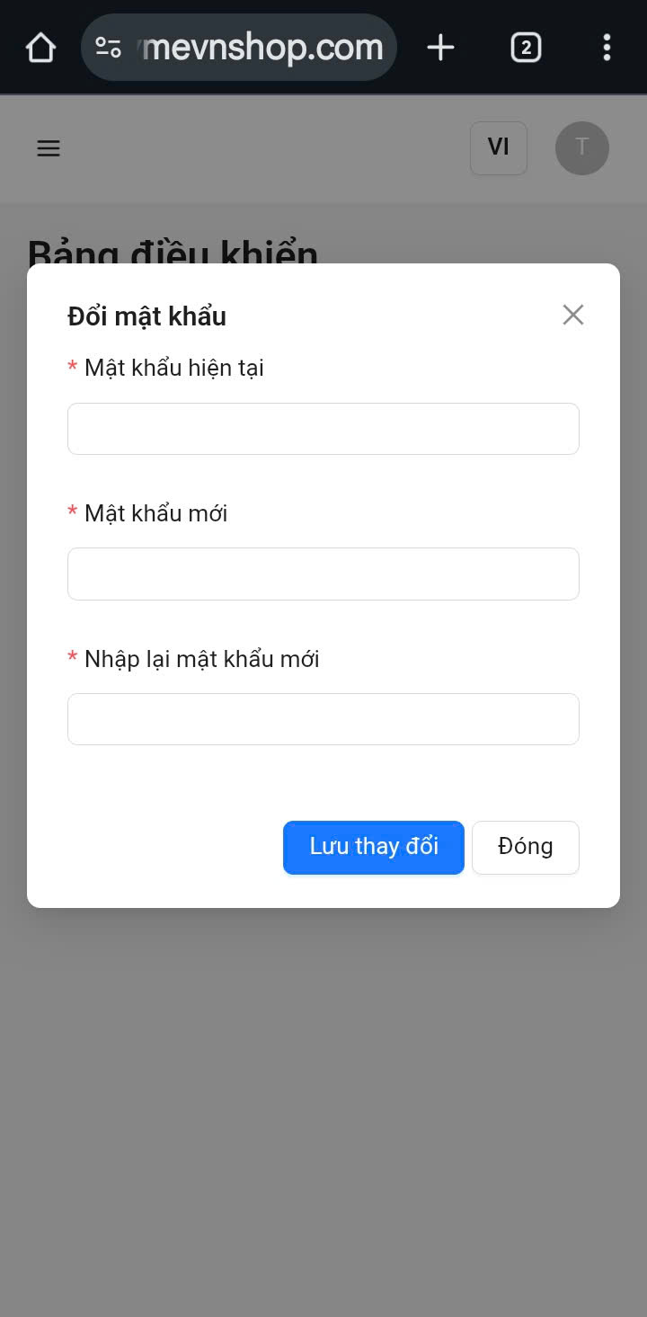 - Mật khẩu cũ (Bắt buộc): Mật khẩu hiện tại của tài khoản