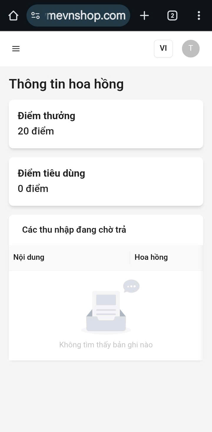 Mục đích: Giúp người dùng theo dõi các khoản hoa hồng và điểm tích lũy của tài khoản.