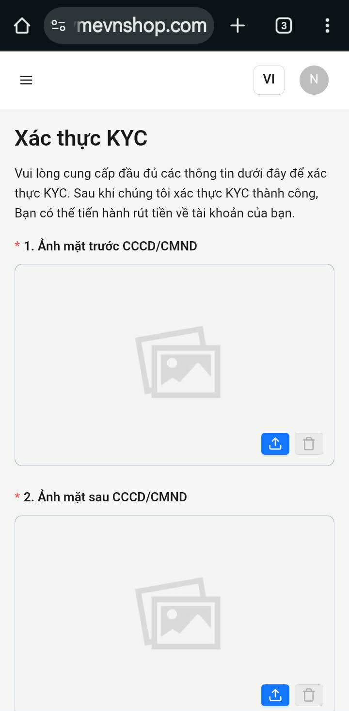 - Bước 2: Cung cấp đầy đủ ảnh cccd và thông tin tài khoản.