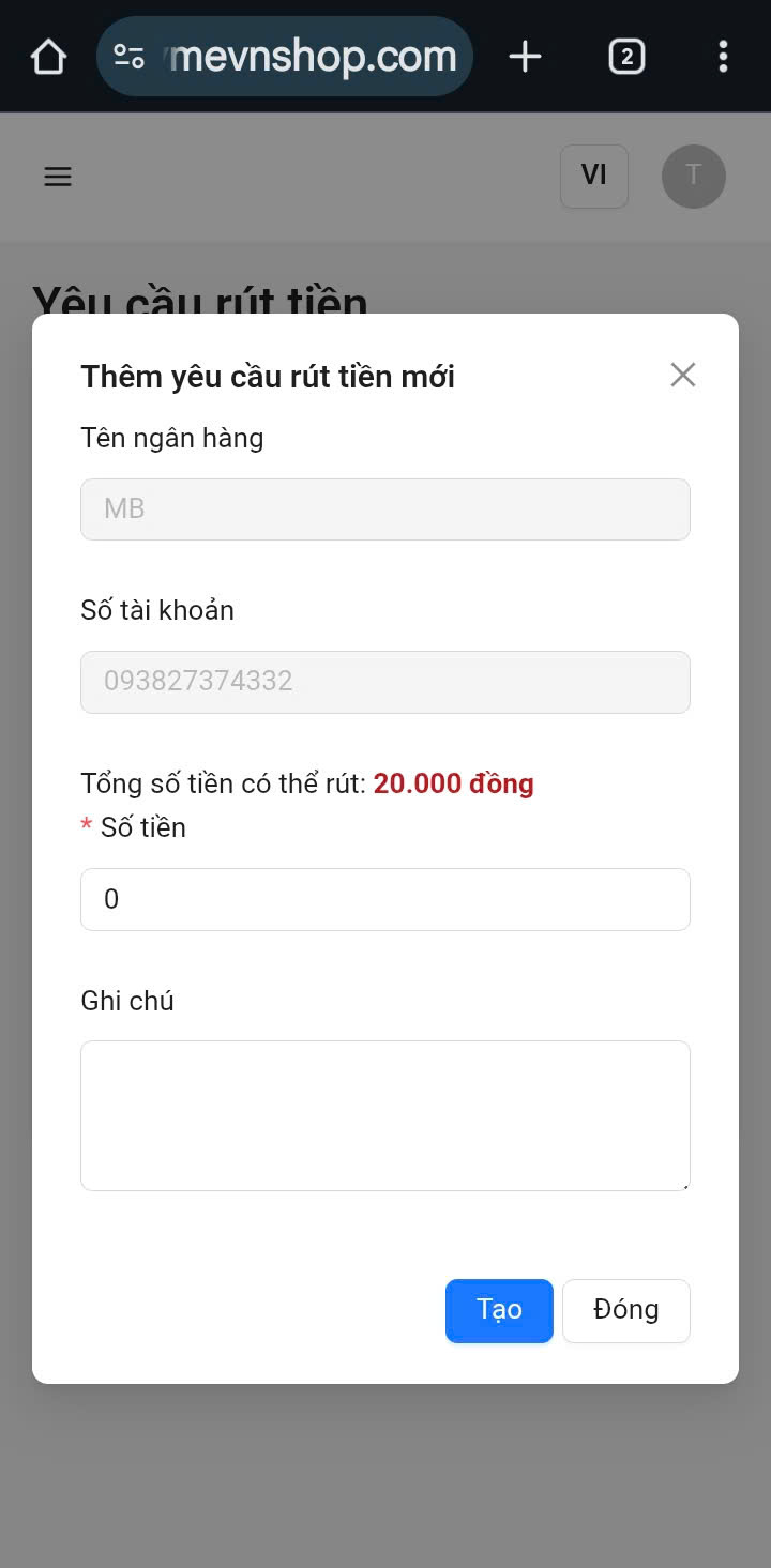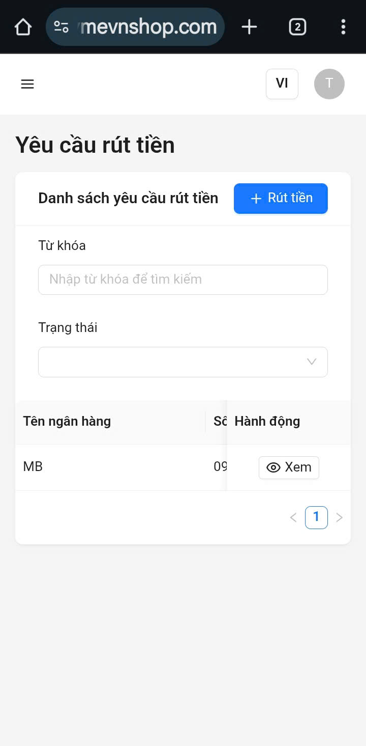 - Bước 1: Người dùng đăng nhập vào hệ thống và truy cập vào trang yêu cầu rút tiền.