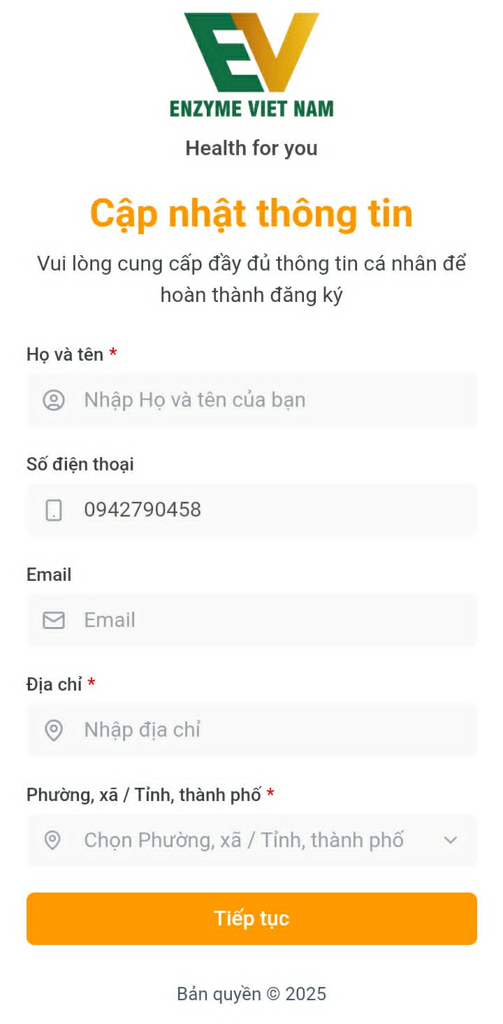 - Bước 4: Điền các thông tin cá nhân bắt buộc và nhấn "Tiếp tục"