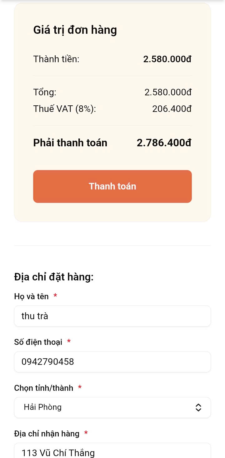 - Bước 5: Sau khi hoàn tất thông tin, người dùng nhấn “Thanh toán” để hoàn tất đơn hàng.